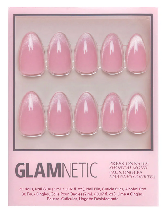 First Kiss Press-on Nails - Short Almond Pink Chrome Finish