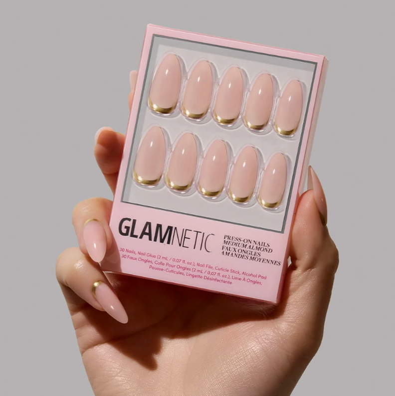 Goal Getter Press On Nails - Medium Almond Nude Gold Luxe Nail